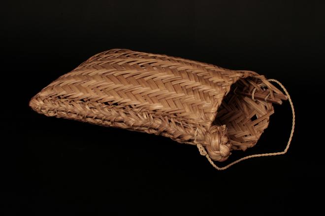 Jeunes palmes non encore déployées de palmier caumou, "kumu amu" : Oenocarpus bacaba Mast. ; coton "mau" ; cordelette de fibres d'agave "kulaiwat"